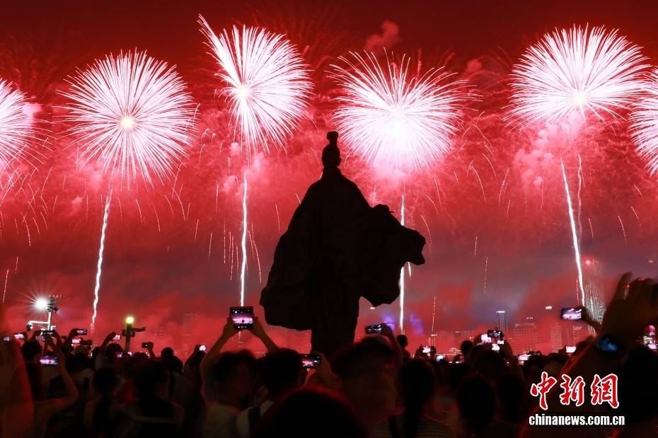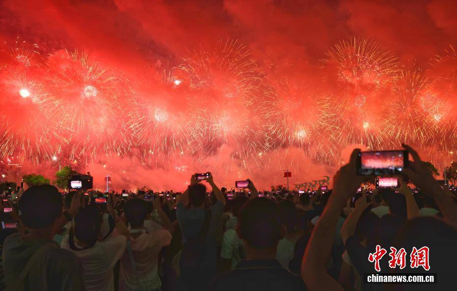 10月1日晚,以“盛世华彩 豫章欢歌”为主题的2025年南昌市国庆烟花晚会在赣江中心的老官洲水域举行,为市民游客献上了一场兼具艺术性与科技感的沉浸式视听盛宴。图为市民和游客在赣江之畔用手机记录璀璨烟花。中新社记者 刘占昆 摄