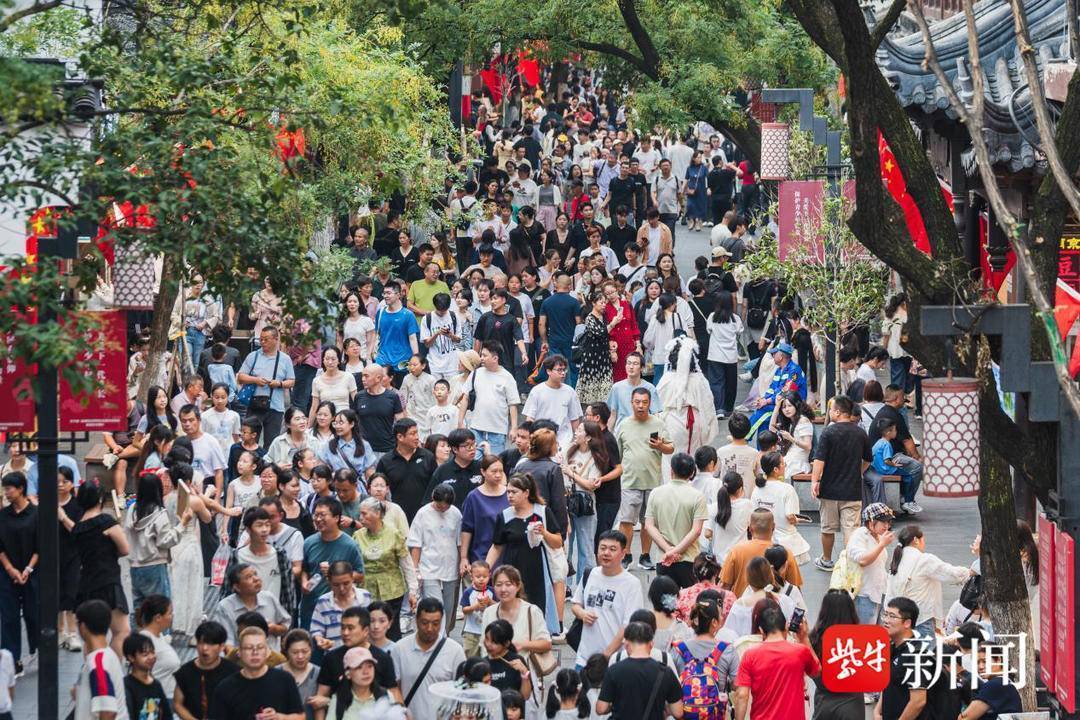 据悉,黄金周期间夫子庙景区内,公安、武警、城管、环卫、市监等多部门工作人员全天候值守,维护景区安全有序、道路洁净,营造了安全、安心、舒适的游览环境。