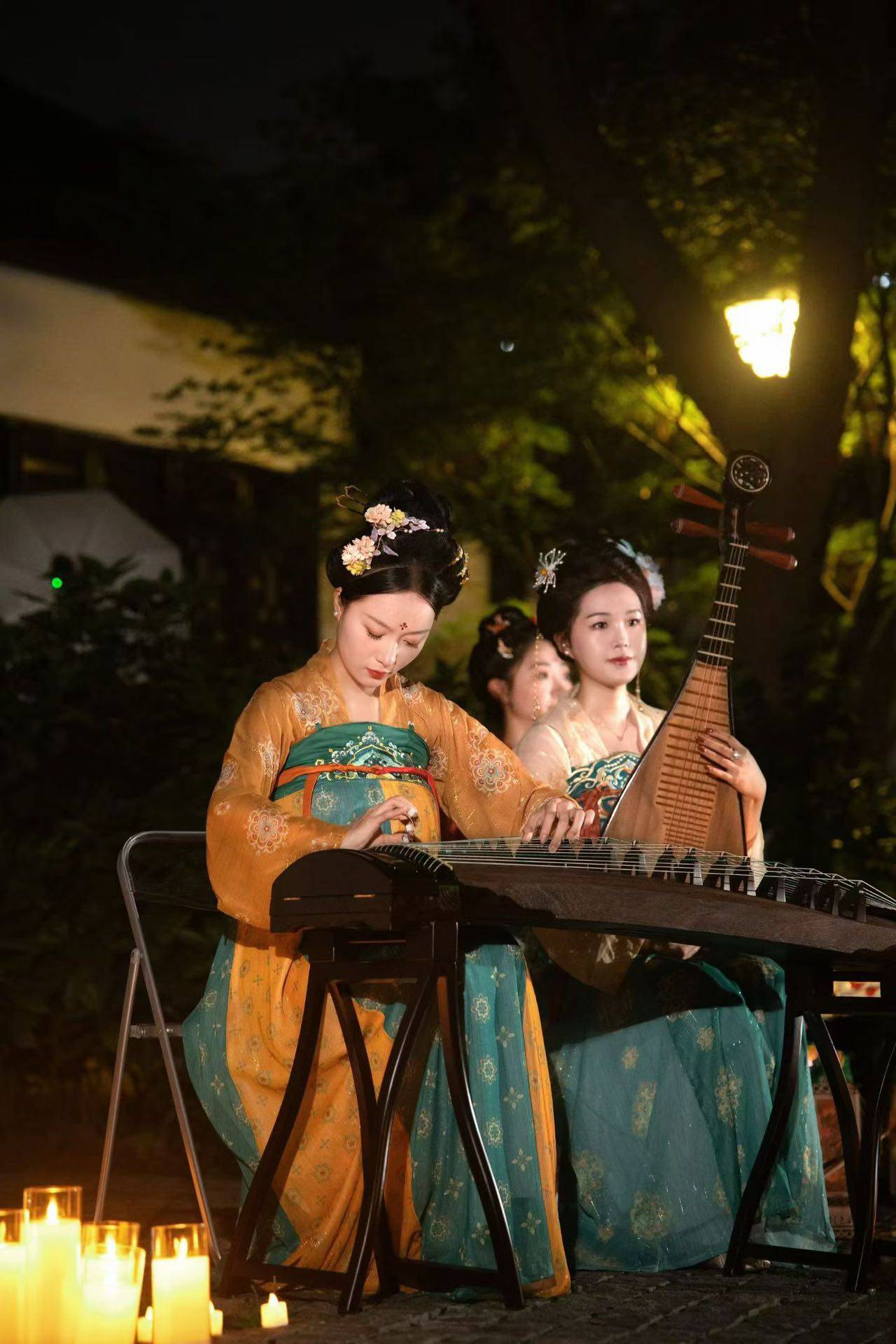 举办国风音乐会 、中秋拜月仪式 、点茶 、拜月巡游等大众喜爱的活动,引发大家积极参与的热情。10月1日晚,浙江昆剧院演员方莛玉与江南丝竹民乐团联袂献艺。水磨昆腔的婉转与丝竹的清新交织,配合华服光影,再现明代《吴风录》中“元夕抱绮衣,中秋制新裳”的雅集场景。