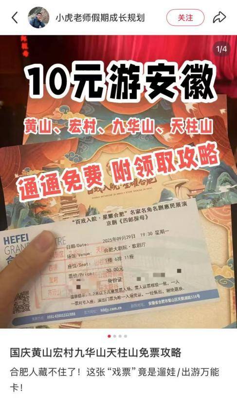 为推动“百戏入皖”的影响力从剧场辐射至全省,合肥文旅部门牵头打造了一张票根的跨域旅程。观众凭演出纪念票根或二维码,不仅能免费畅游合肥市内的40家主要景区,更能一路向山河进发,直抵黄山、宏村、西递、九华山、天柱山等安徽顶级风景名胜。这打破了传统演出活动的地域局限,将戏曲观众直接转化为旅游人群,实现“为一场戏,赴一座城;因一张票,游一片景”的引流效果。