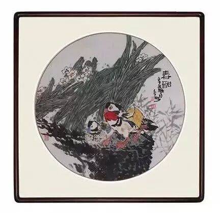 镜片(上三图),亦称镜心,是托裱后的画心,适用于夹放在镜框内,故称镜心。其形式横竖皆可,是一种简化了的立轴装裱形式,可装在镜框里悬挂欣赏。中国的镜框设计讲求简练,不重雕饰。