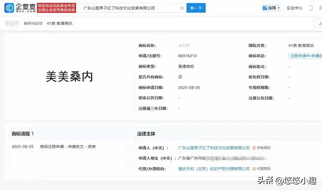 音乐节效应持续发酵,相关话题霸占热搜榜长达48小时。敏锐的商业嗅觉让小沈阳团队迅速行动,其公司已申请包括"美美桑内"在内的多个商标,布局艺人培训领域。这些商标灵感正来源于沈佳润新歌《美美Sunday》的谐音梗。