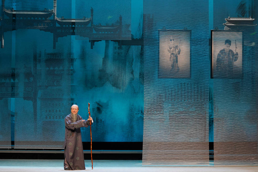 在舞台设计方面,主创团队摒弃了繁琐的装置堆砌,巧妙运用21道类宣纸幕,使市井、厅堂、心理等多重时空变幻自如,加之灯光、投影的溢彩生辉,使虚实、动静、音画、明暗和谐共生,形成了极具浪漫主义色彩的舞台风格。音乐设计上则融入北京民歌、京韵大鼓、湖南山歌,独具民族特色。