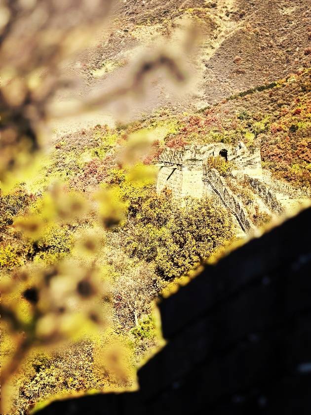 登至长城的一个箭楼,我回首望去,左边一道长城上游人如织,右边一道长城上却寂寥无人。而我们艰难攀爬的这道野长城被称为“错边长城”,只有一小段,据说是当年修错了的。我们独享这一段“错边长城”,好幸运!这可真得感谢张宏兄的细心引领,他已经与长城毗邻而居三年多了。