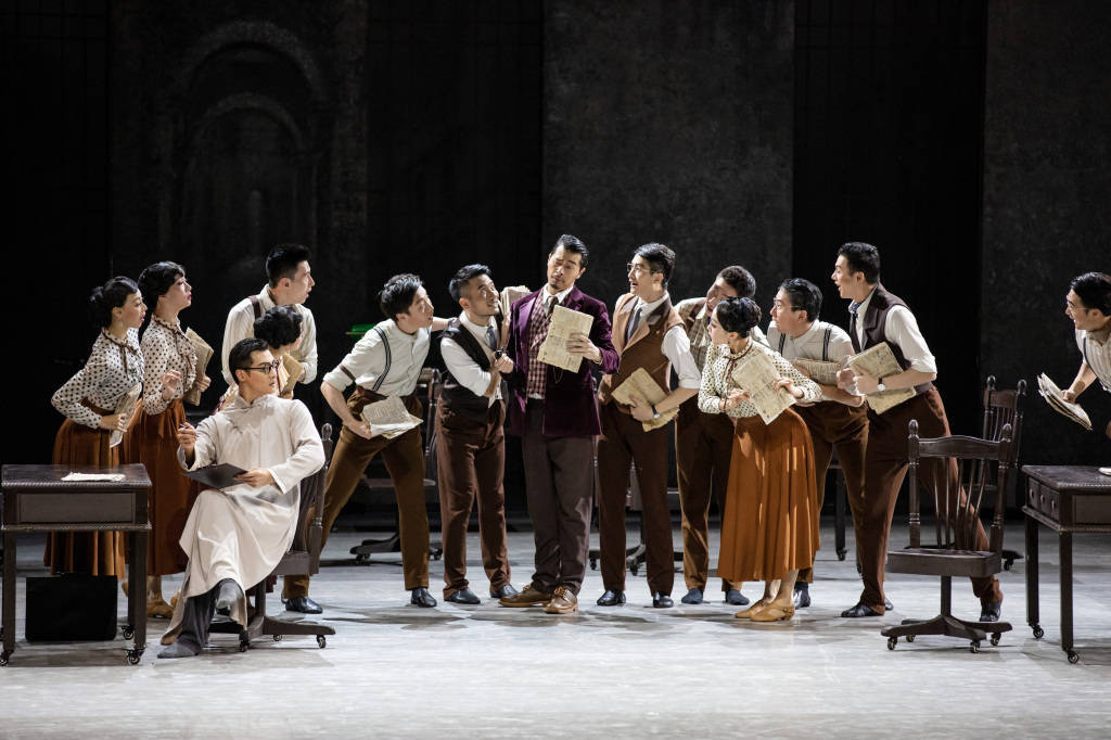 “电波”也面临着演员更替。他把“熟戏生跳”四个字送给演员们,还总和他们起朱洁静的故事——每场演出上半场结束后,她都会第一时间发信息问他:有没有跳超了,使大劲了?表演还贴合角色吗?——“她做到了对角色的极致爱护,这也是所有人该有的态度。”有一次,朱洁静给他截了一张图,有二楼观众反映“渔光曲”的斜线不齐,之后他都会反复核对,确保不管观众在哪个位置看到的都是整齐画面。