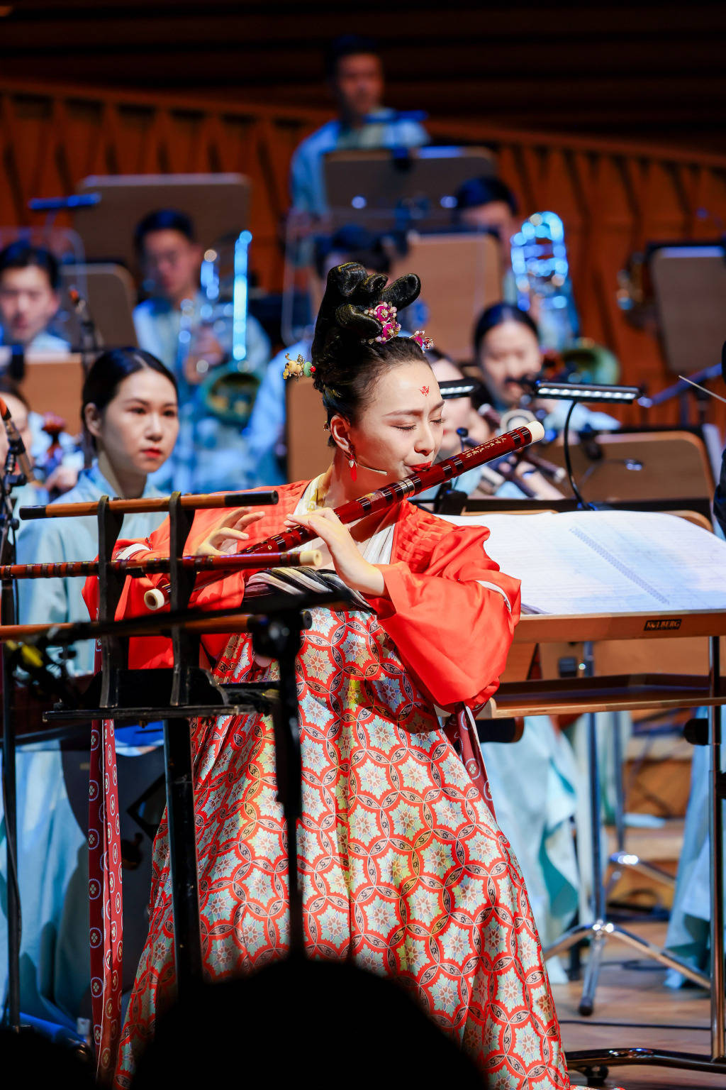 “万物生息”从《诗经》汲取灵感,再现先民在农耕文明中对天地的敬畏;“江河滔滔”以混声合唱、童声合唱与乐队,展现华夏文明将内外交融转化为前进动力;“朝日流霞”通过琵琶、笛子、箜篌、打击乐与人声,勾勒盛唐气象;“空山月明”以尺八、笙、古筝、阮,捕捉“禅意入诗”的灵性瞬间;“风骨铮铮”通过唢呐与乐队的竞奏,展现民族精神中的刚毅与赤诚;“星河共潮”以混声合唱、童声合唱与乐队,歌颂中华文明新篇章的书写。