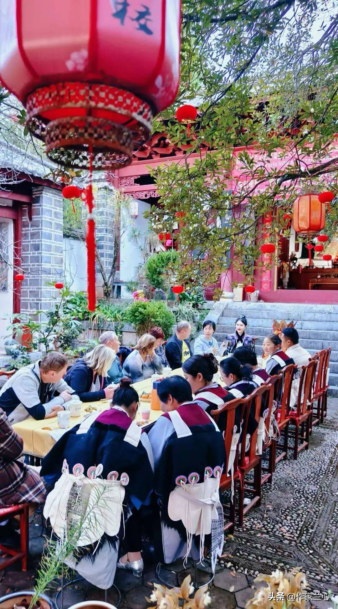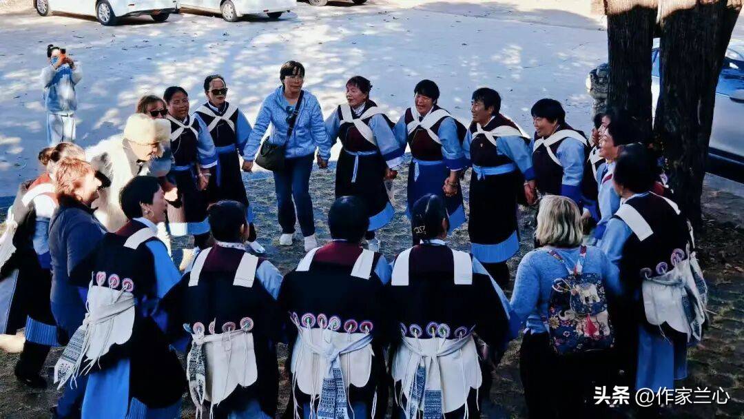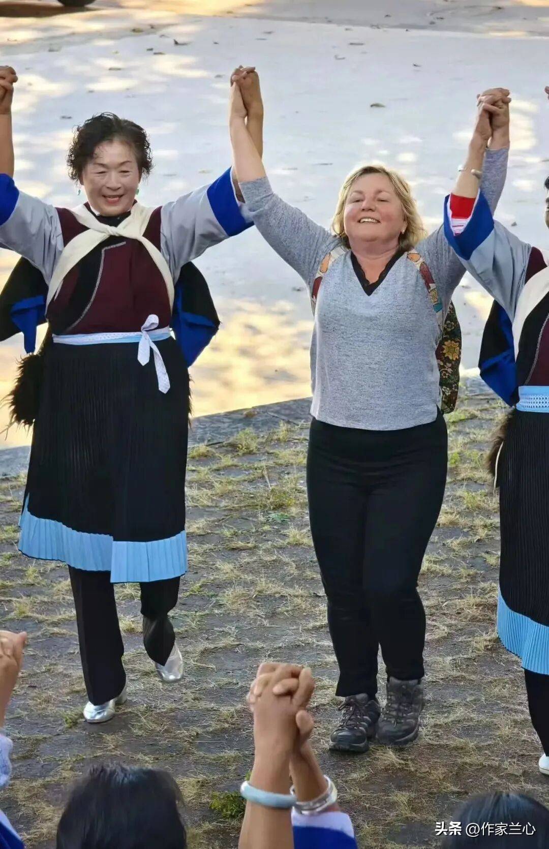 本土纳西族女性身着“披星戴月”传统服饰,带领捷克友人共同跳起纳西族传统舞蹈