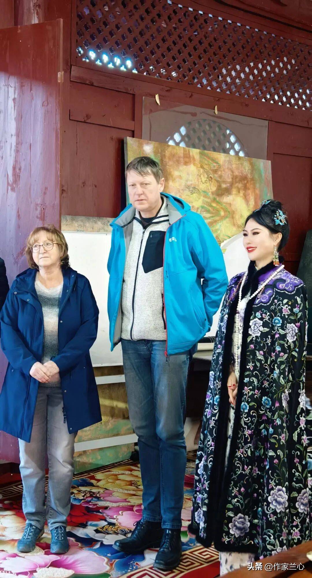 兰心身着中国非遗苏绣服饰,向捷克友人介绍中国传统文化和非遗