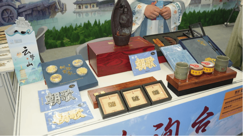 云梦山景区带来的朝歌文化主题文创同样大放异彩。封神主题剪纸线条细腻,再现商周风云;鬼谷子文创、饕餮徽章深挖历史IP 价值,兼具收藏与实用属性;金银花养生茶、康养套盒则将太行山水的生态馈赠与中医康养文化相结合,成为展会特色亮点。工作人员现场发放景区宣传册,热情推介沉浸式旅游线路,让与会嘉宾直观感受鹤壁“可触、可观、可玩、可购” 的文旅魅力。