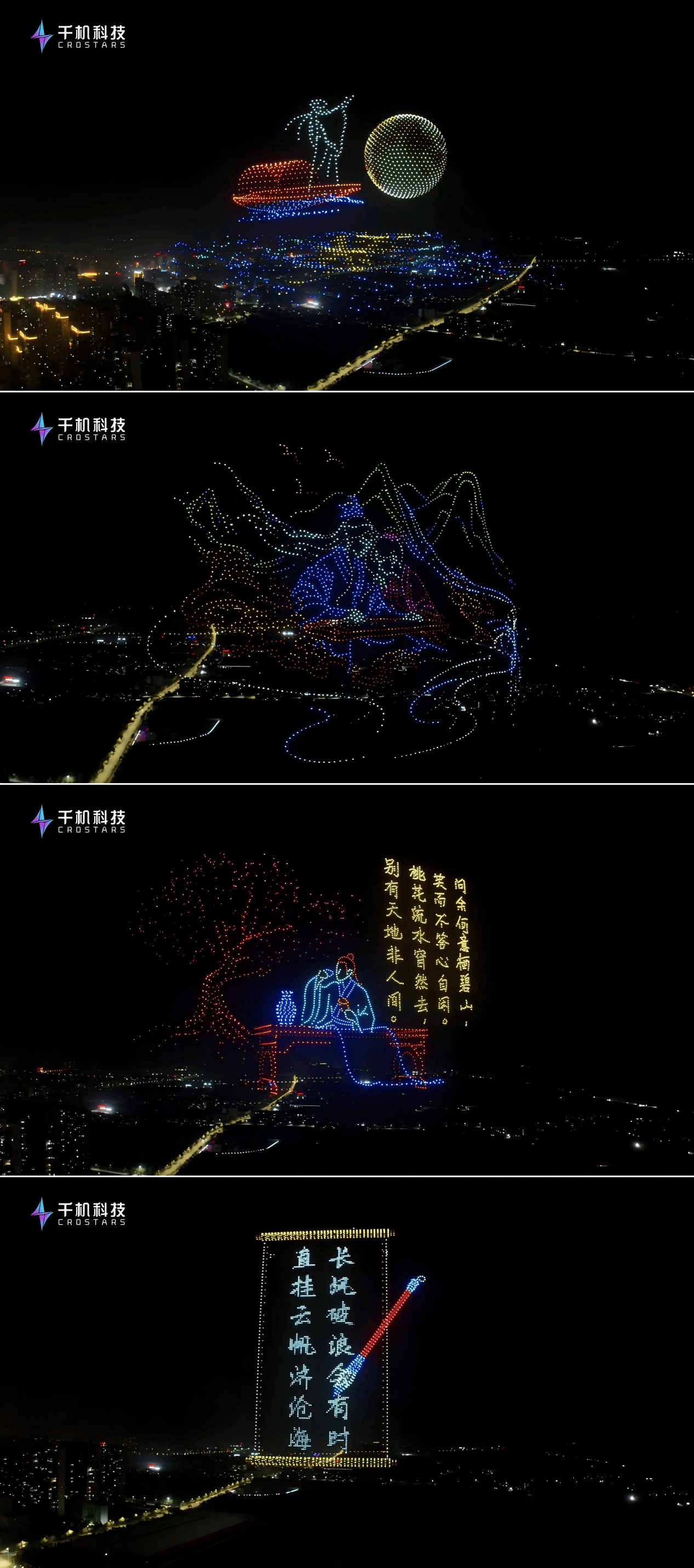 本次表演由千机科技倾力打造,旨在通过科技与艺术的融合,创新传承李白文化。千机科技启用千机C5全新一代智能无人机表演系统来完成本次表演。
