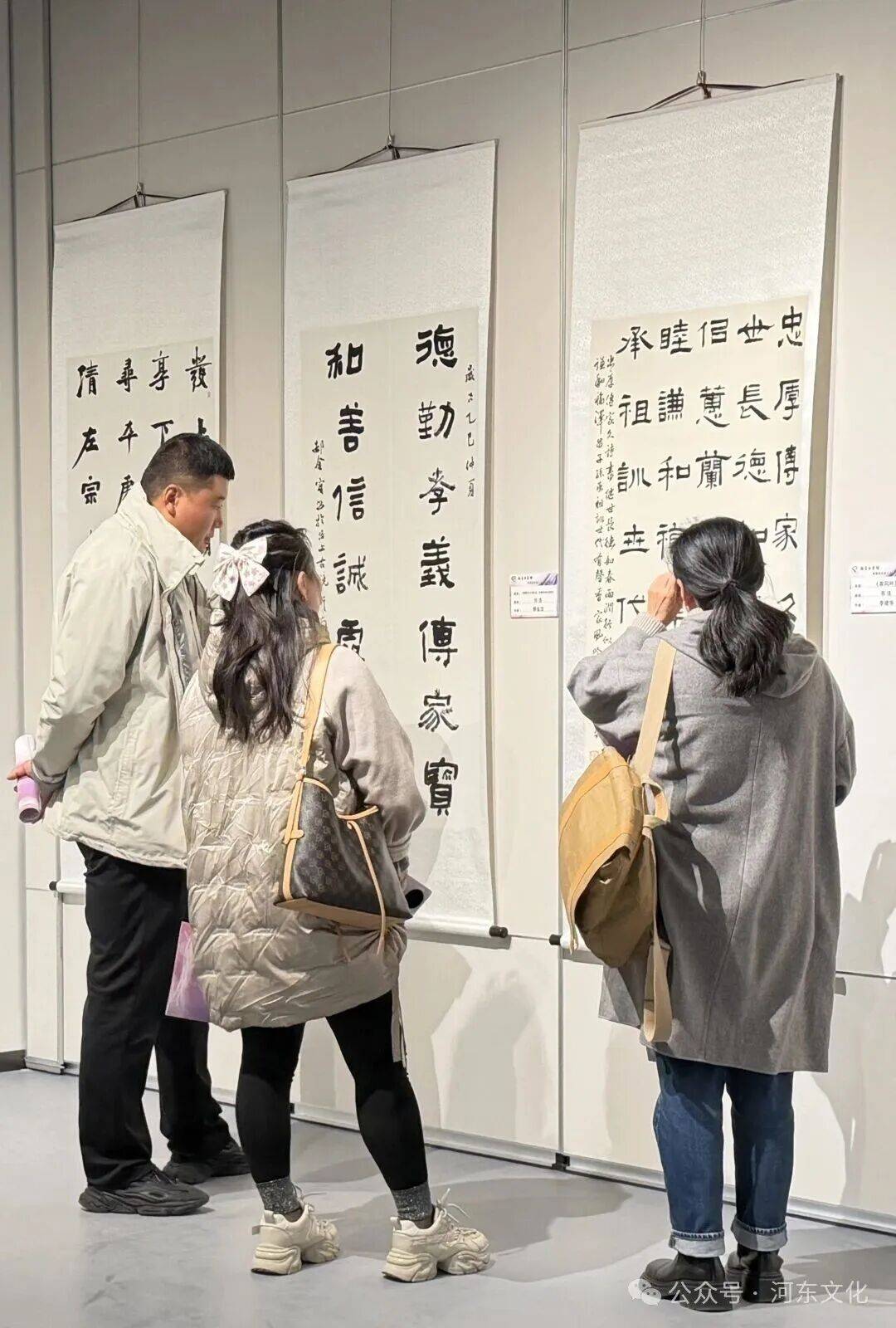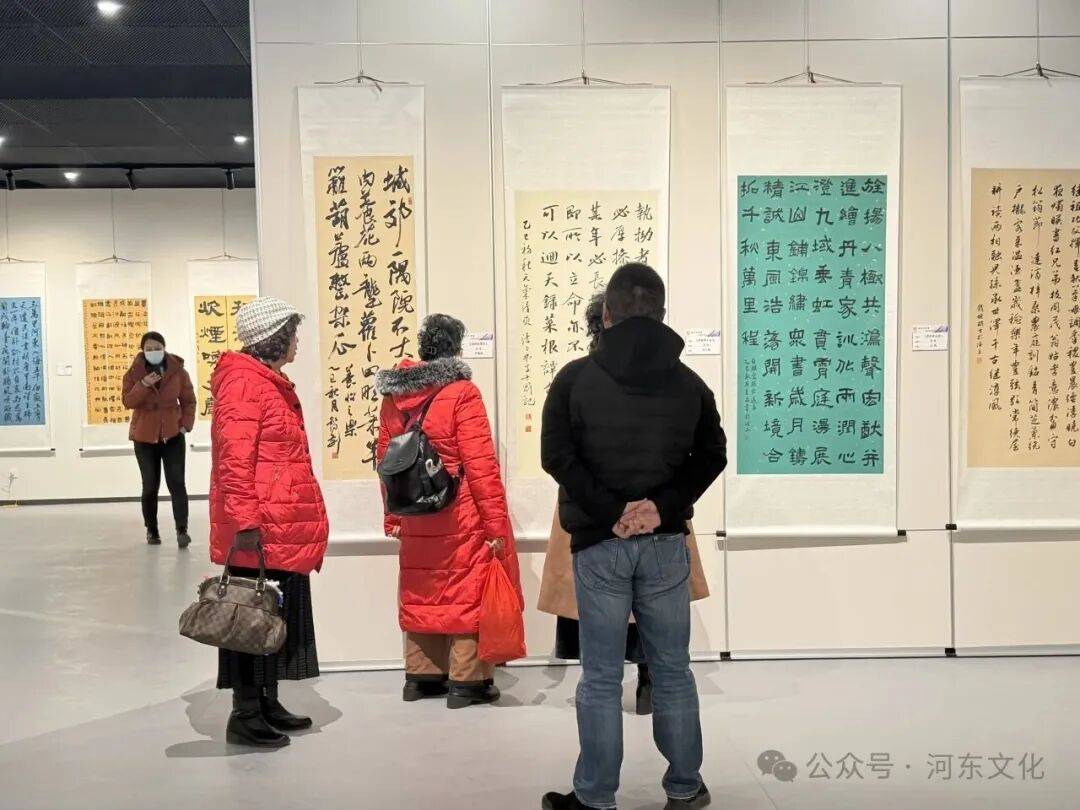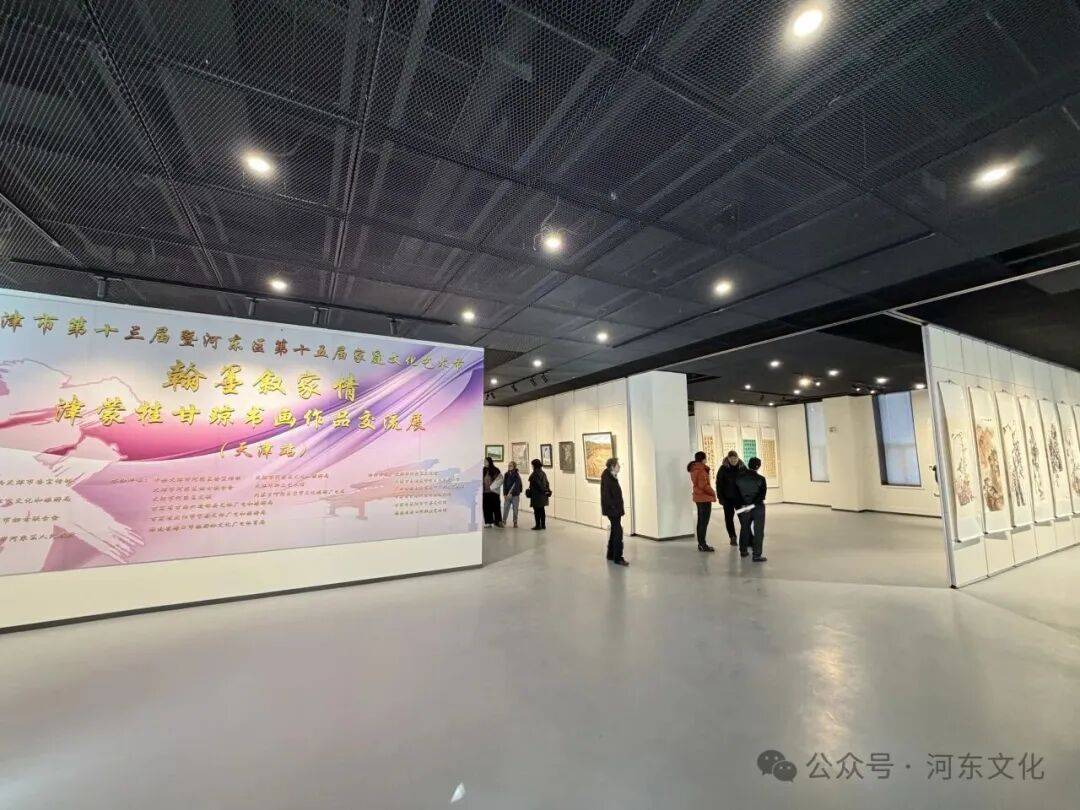 演出开始前,各位来宾参观了2025年天津市第十三届暨河东区第十五届家庭文化艺术节闭幕式系列活动 ——“翰墨叙家情”——津蒙桂甘琼书画作品交流展(天津站),展览以“中华民族一家亲”为主题,汇集津、蒙、桂、甘、琼五地艺术家的精品力作,共展出优秀书画作品80余幅。这些作品既有对传统家风家训的深刻诠释,也有对现代家庭生活的艺术捕捉;既有对多民族大家庭团结进步的深情礼赞,也有对祖国壮丽山河的纵情讴歌。每一幅作品都是家国情怀的艺术呈现,都是时代精神的生动注脚,更是对家庭文化建设四十周年的深情致敬。