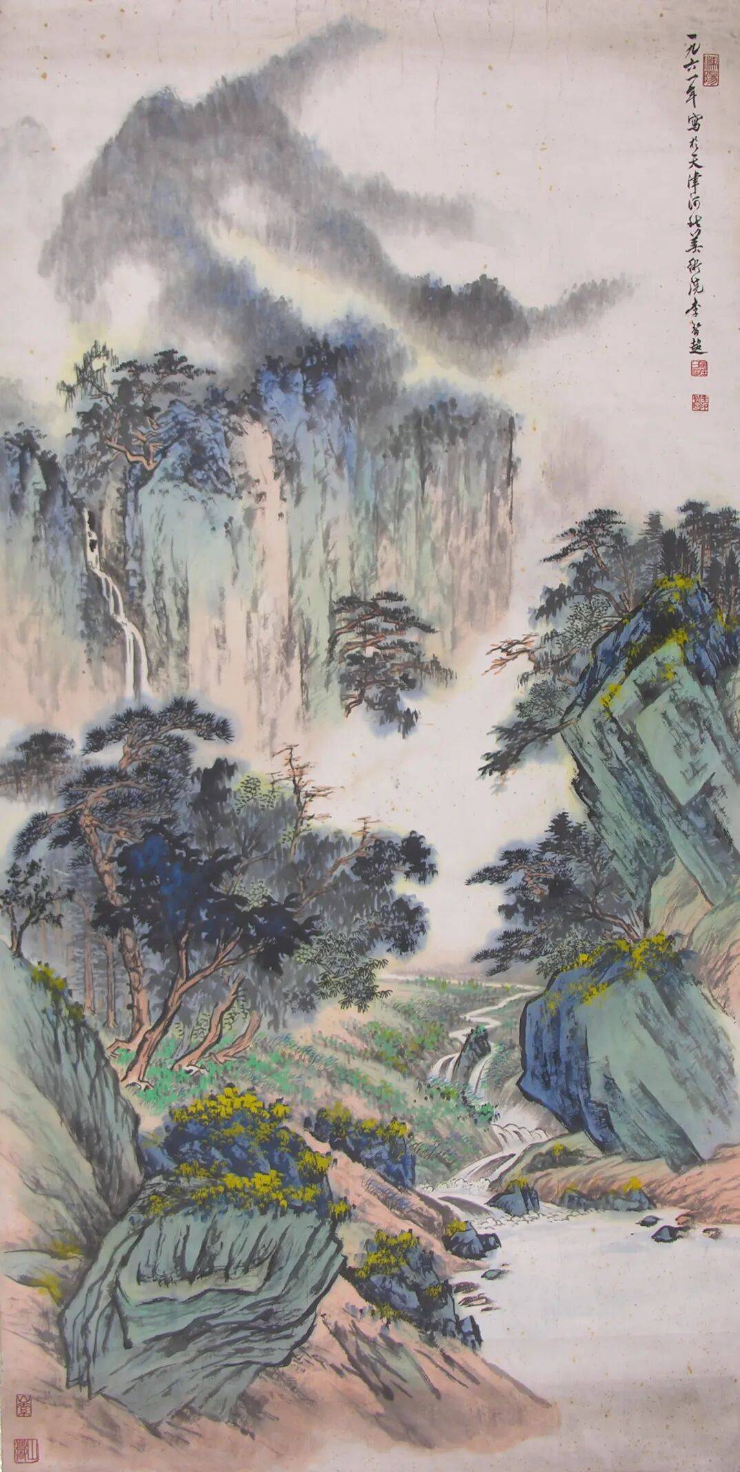 李智超 《秋景青绿山水》135×68cm 1961年