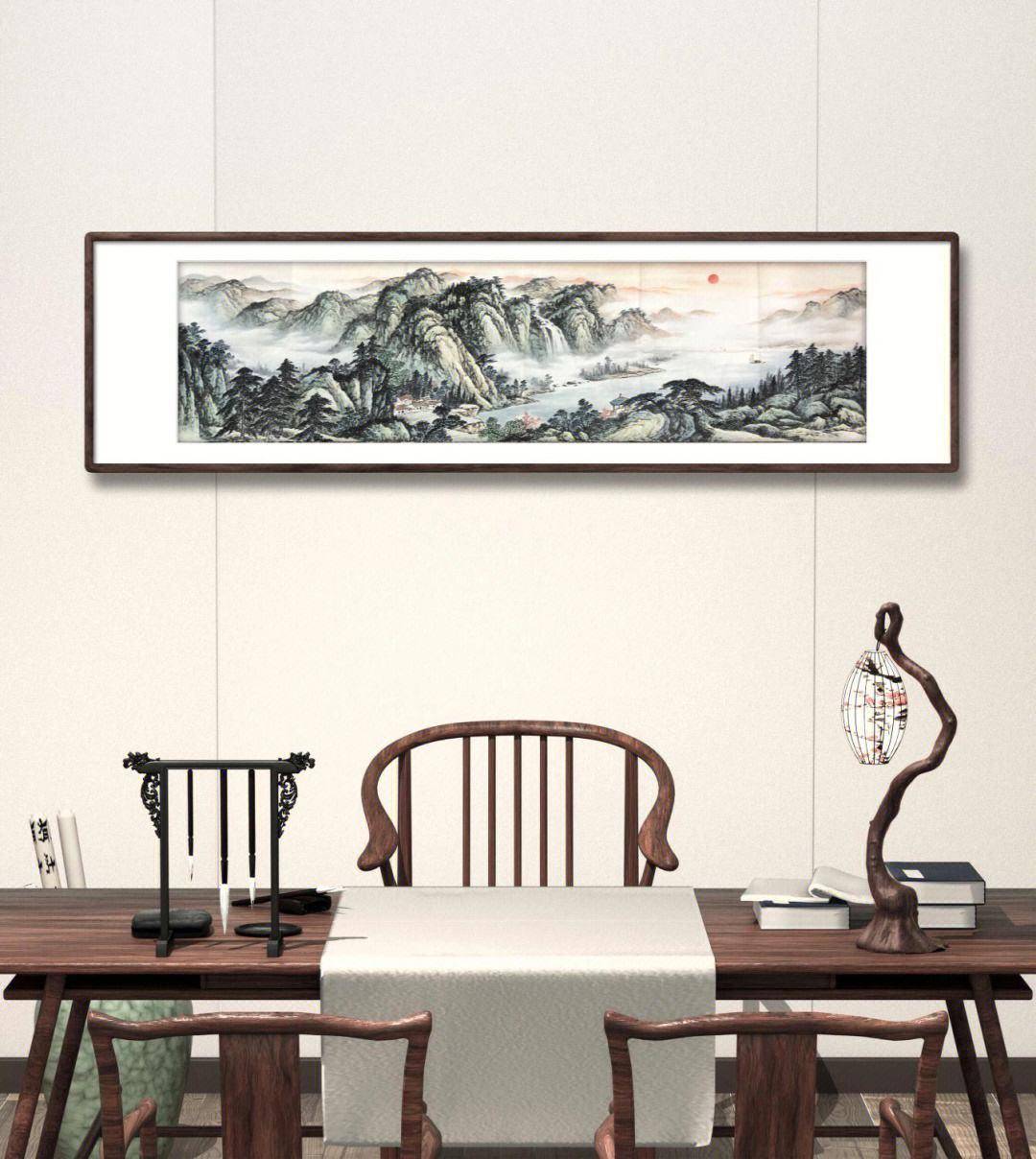 不同房间的用途,也应考虑在选择山水画时。在卧室,宜选择表现宁静、柔和景象的作品,有助于提高睡眠质量。客厅或书房可以选择气势恢宏、宽广的山水画,营造宽敞开阔的空间感。