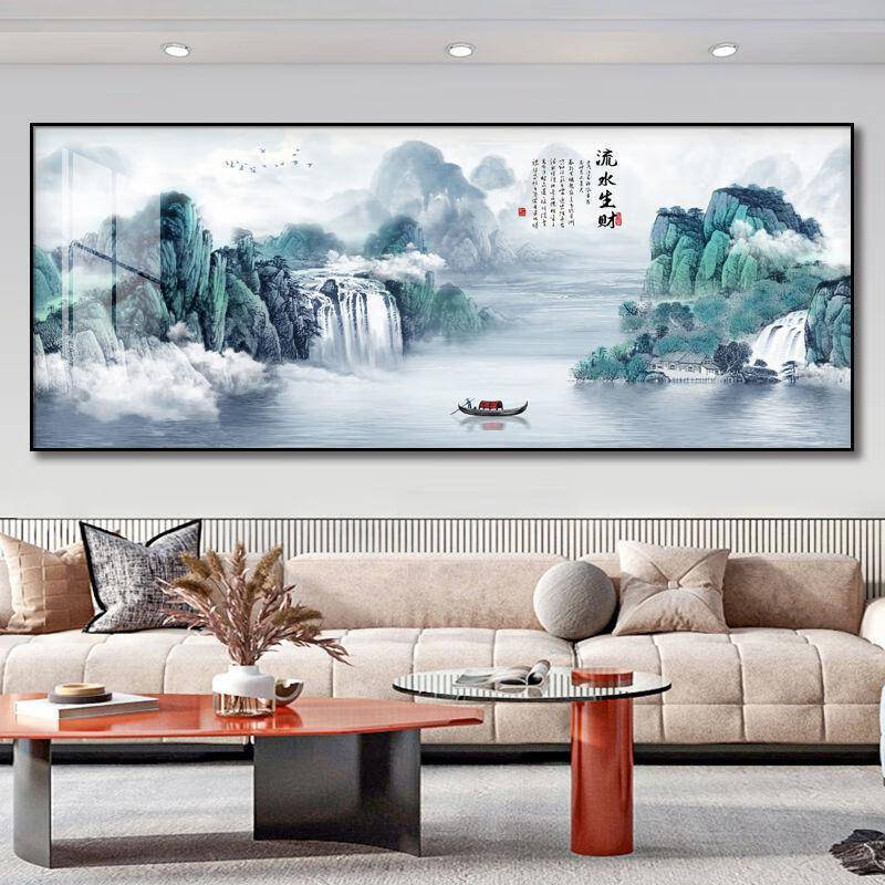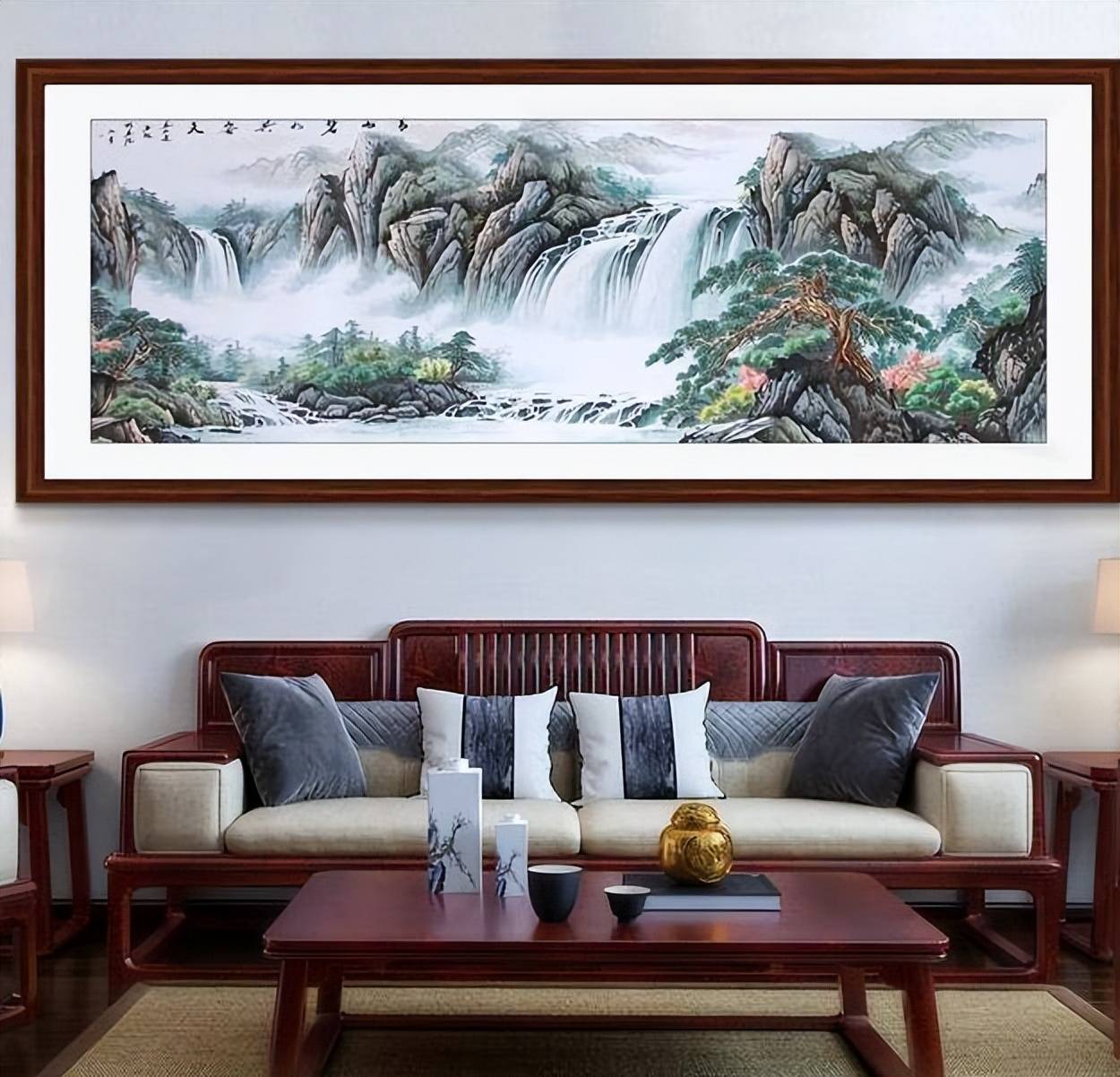 色彩在山水画中起着至关重要的作用,温暖的色调如深蓝、浓绿、淡黄等能够让人感到宁静和舒适,而过于刺眼或单调的颜色,则可能产生相反的效果。根据家居的整体风格和颜色,选择与之相协调的山水画,使其融入空间,起到点睛之效。
