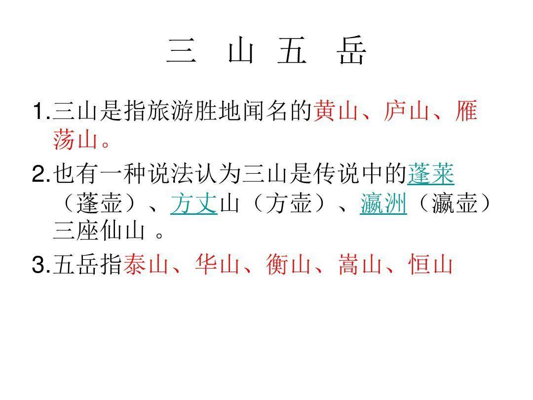 五岳是指泰山、华山、衡山、嵩山、恒山。这五座山分布在中国的不同地域,各具特色,具有丰富的历史文化内涵。