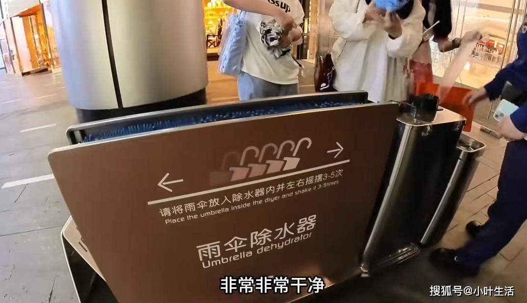 更让她没想到的是,一些公共场所还配备了雨伞除水器。下雨天进商场,把湿漉漉的雨伞放进去,几秒钟就变得干干爽爽,再也不用担心把地面弄湿。她拿着除水器研究了半天,直呼“太神奇了,这种小发明真的太实用了”。