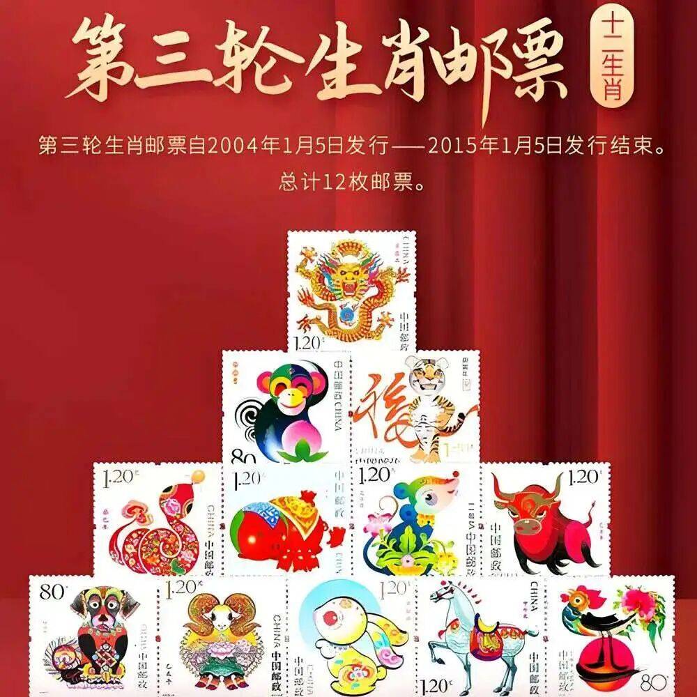 第三轮生肖邮票发行于2004至2015年,正是生肖文化与现代工艺的完美交响。