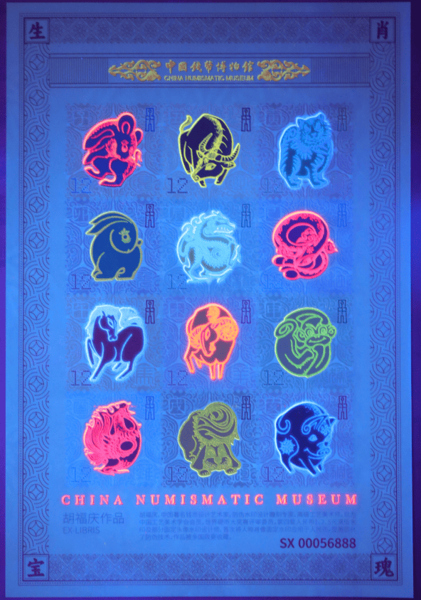 于紫外光下观之,十二生肖荧光图案翩然生辉,纤毫毕现,既筑牢防伪壁垒,更将艺术表现力与珍藏珍稀度推向新境。