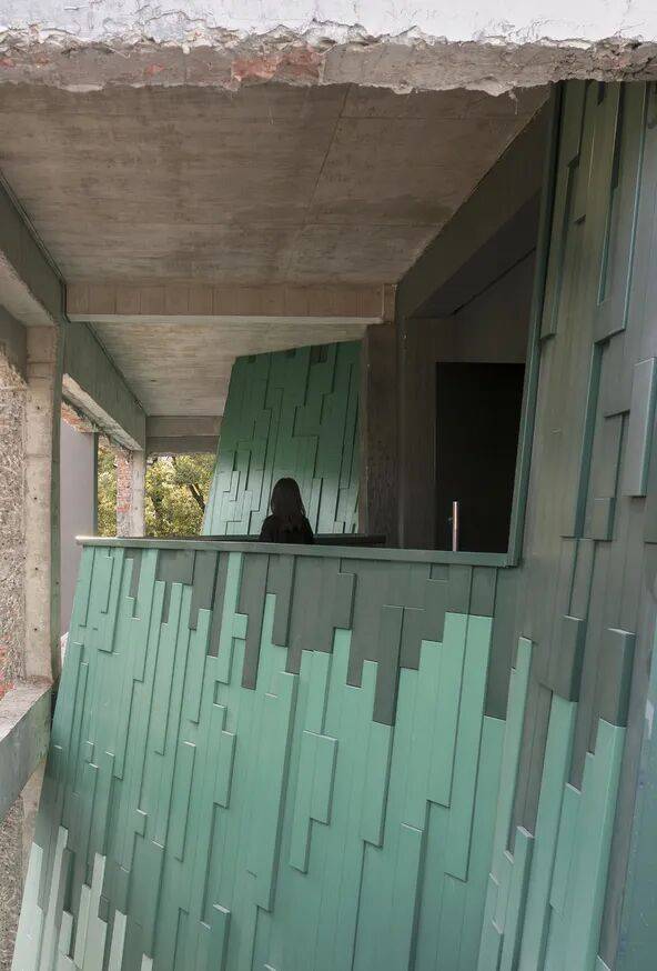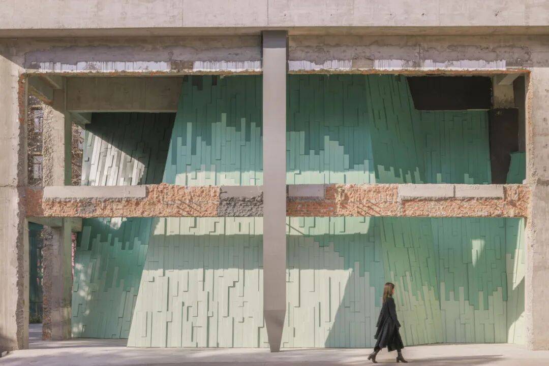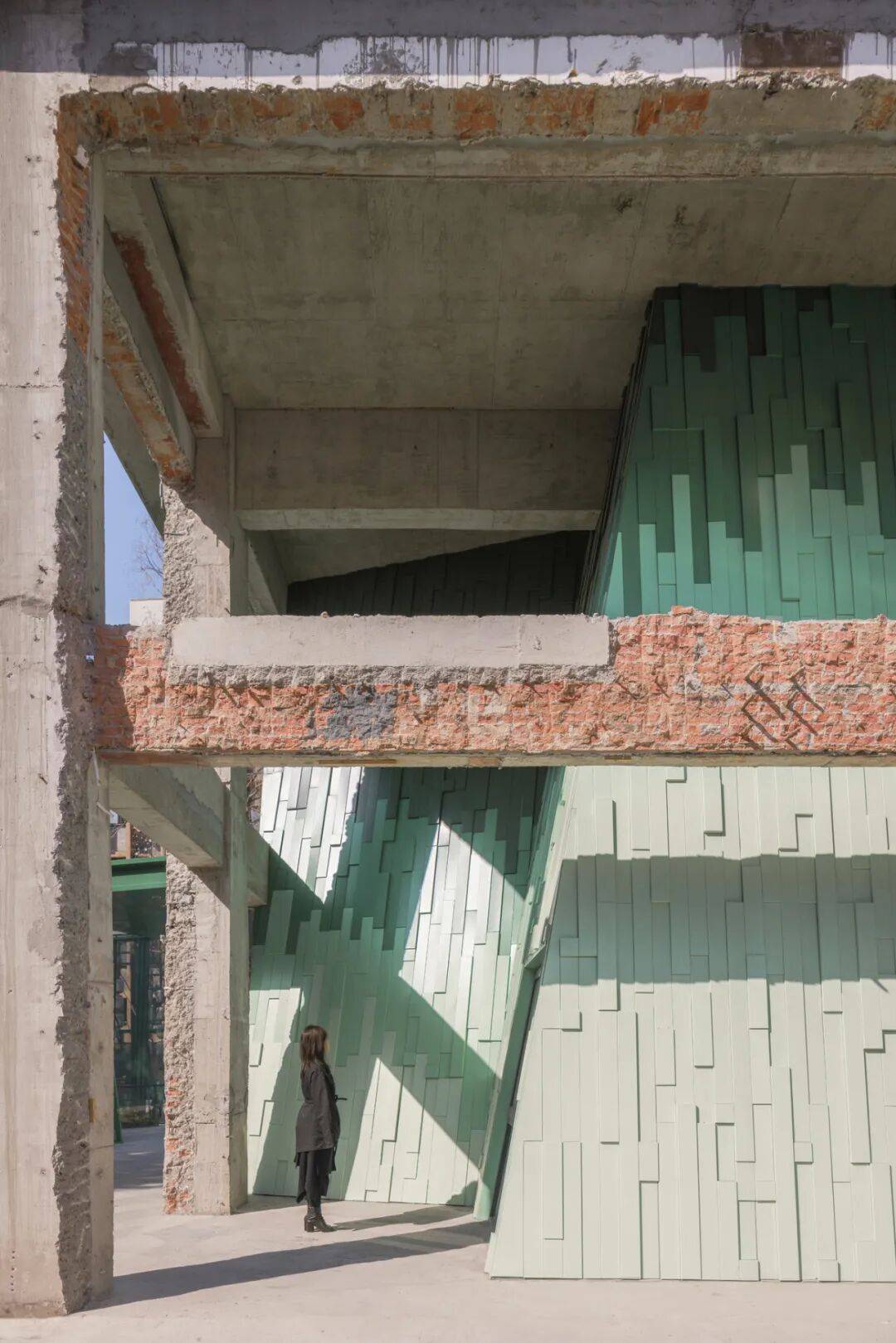 对于象征成见和秩序的旧建筑的拆除,设计师也把当代工人的施工半成品,这一偶然性成果作为文本一起编织进来。