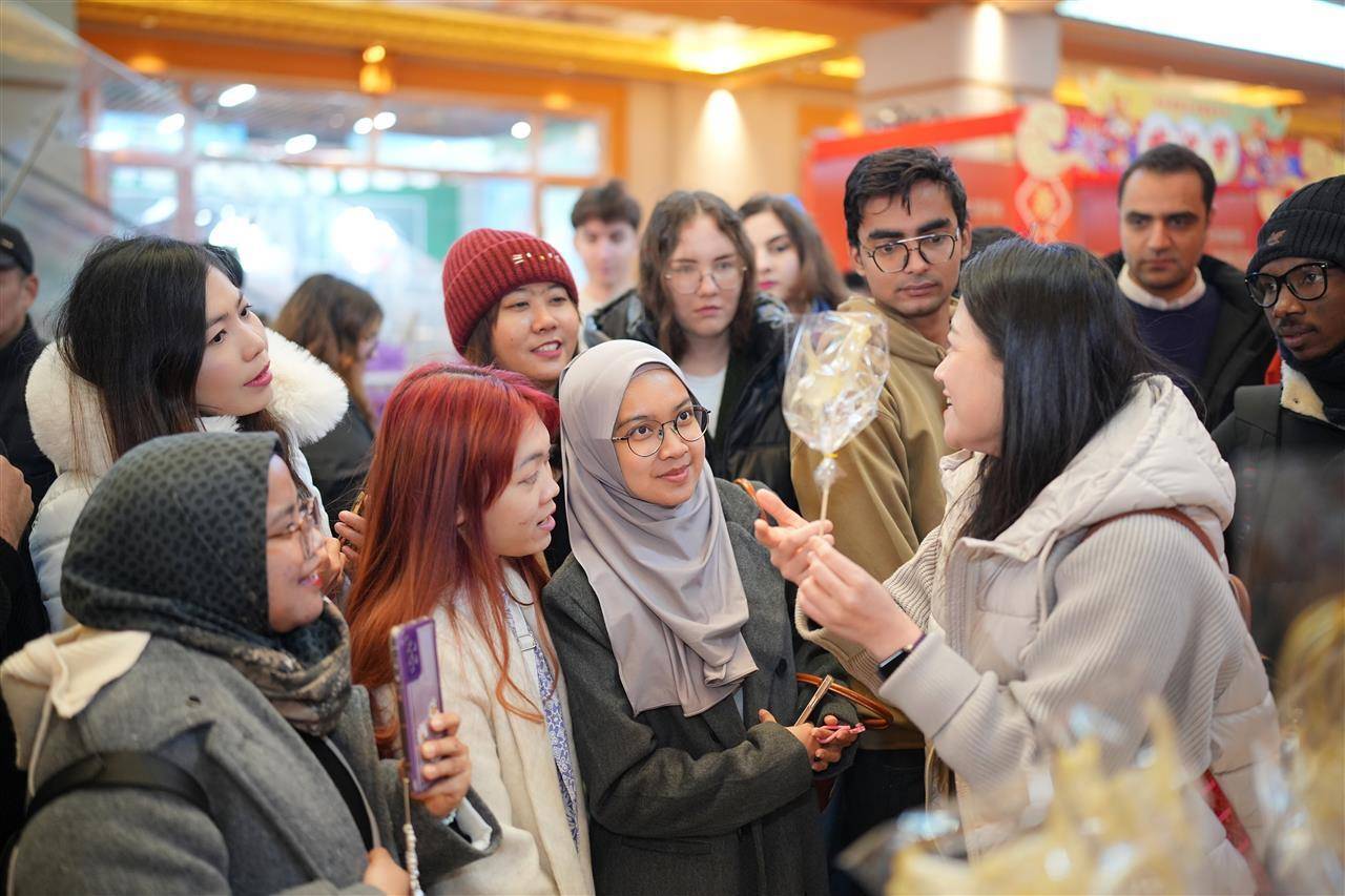 室外的美食区堪称“人气担当”,香气四溢的非遗美味唤醒舌尖记忆。糖画摊位前始终排着长队,传承人以糖为墨、以案为纸,手腕轻轻转动,金黄糖浆便勾勒出栩栩如生的小动物,带孩子来游玩的市民李先生告诉记者:“我们小时候玩过的糖画,今天让我的孩子也感受下我们的童年快乐。”