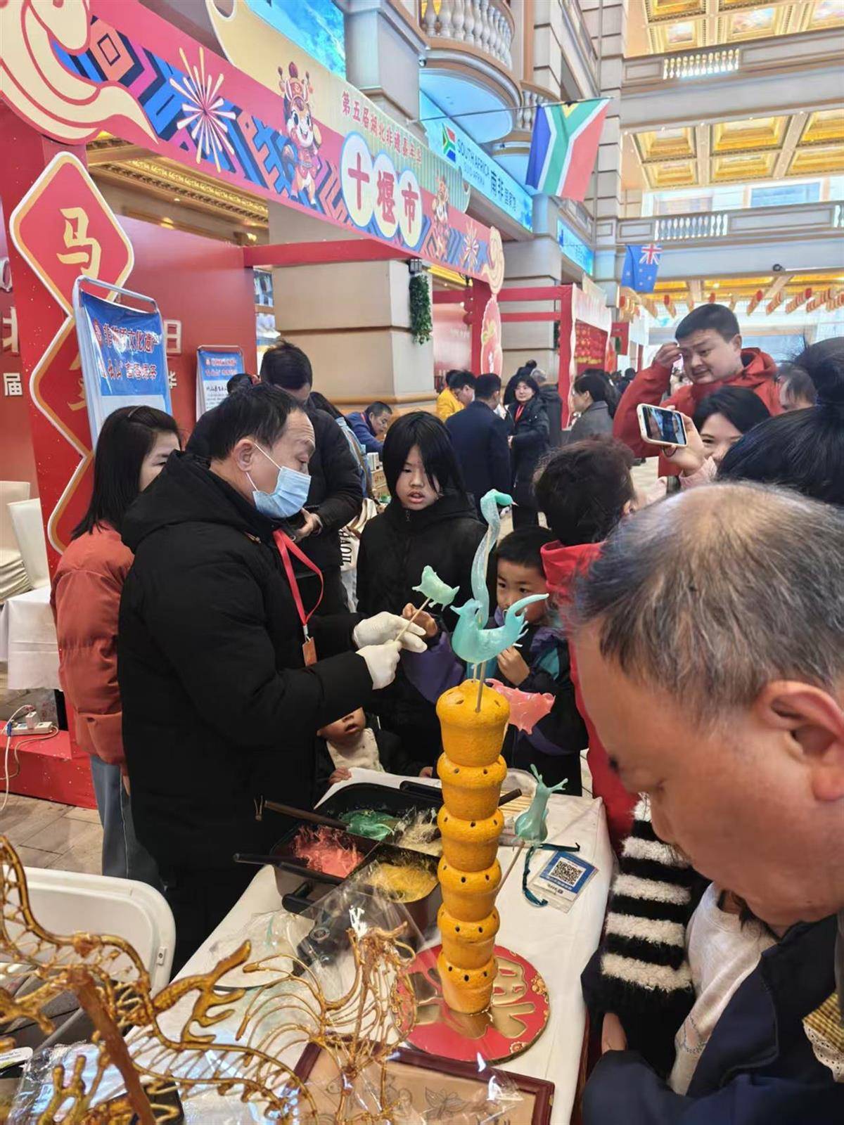 一勺香甜的麦芽糖,在艺人手中挥洒自如,转瞬就化作一只栩栩如生的小动物;一团黄色陶泥经过揉捏、提拉后放置在陶轮上,经反复摩挲调整弧度,片刻间一只线条圆润的陶碗雏形便跃然眼前……1月17日上午,武汉长江新区华中贸易服务区内年味浓郁、人声鼎沸,2026年首场“知音湖北 超级文旅日”暨第五届湖北非遗嘉年华年货市集正式开幕,这场集文化体验、民俗娱乐、消费购物于一体的新春文旅盛宴,以一系列沉浸式非遗互动体验活动,让市民在嘉年华中感受非遗魅力,让荆楚传统文化在互动传承中焕发新生。