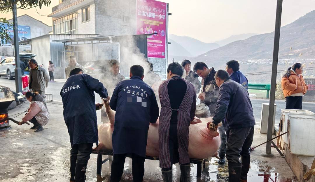 干脆利落地结束这个过程,不仅让猪少遭罪,也是主人家的心愿。“如果一下就把猪杀了,血也流得很顺畅,意味着主人家来年顺顺利利。”徐利勇说。但他和杜仕福都表示,哪怕血液残留在猪的身体里,大家也会说吉利话,“这是主人家的‘内财’”。