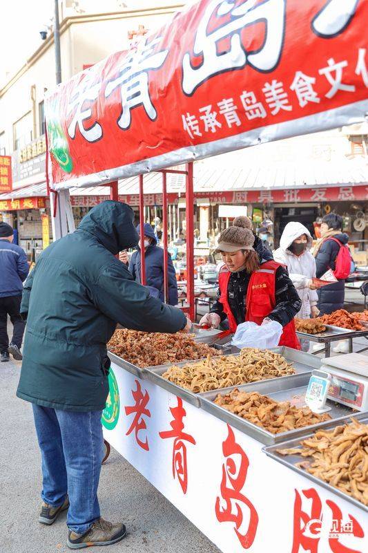 人们在山东省青岛市李沧区李村大集选购年货。