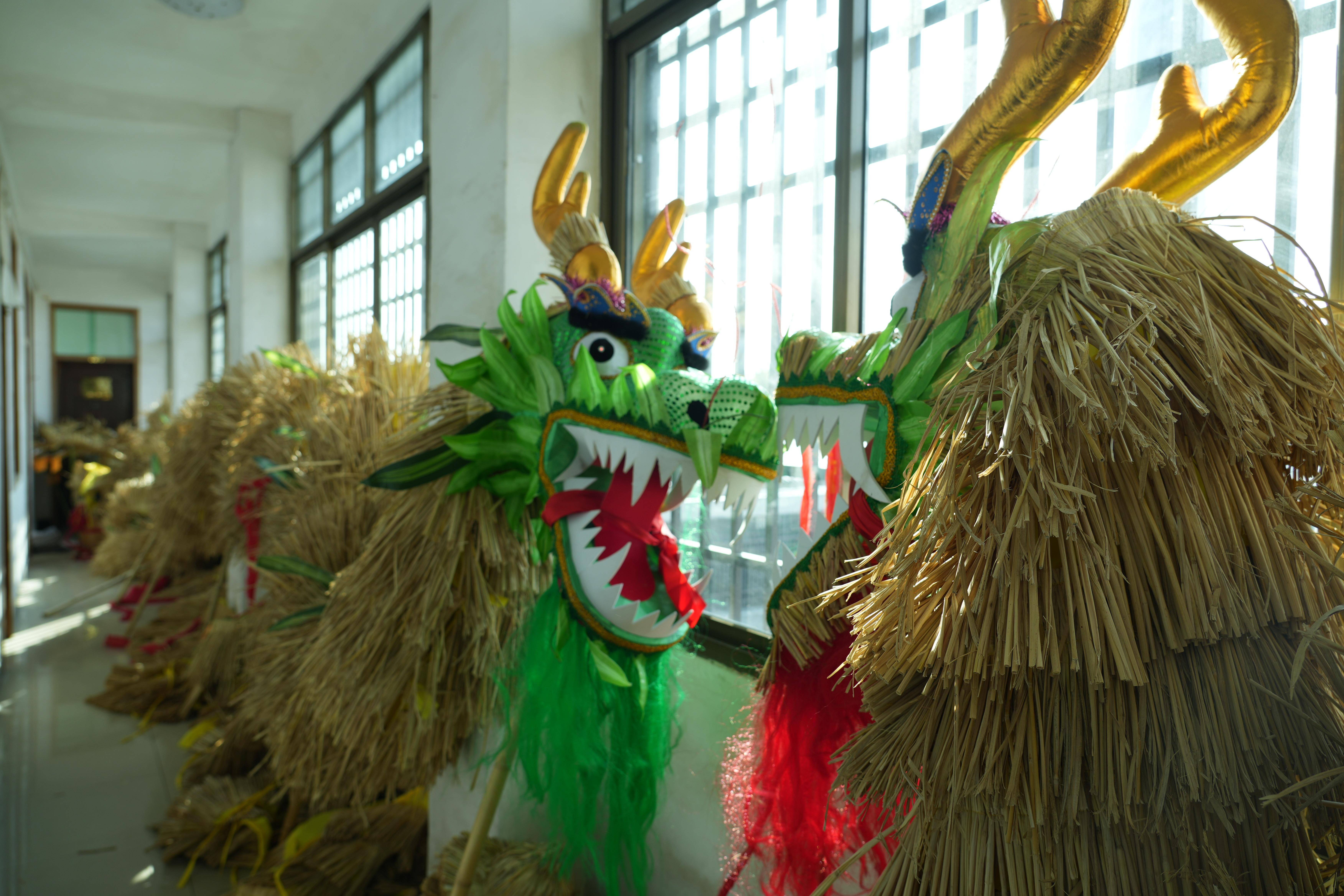 与之形成鲜明对比的,是全长150米的“巨龙”,需要99人共舞、1人执龙珠。当它被众人高高擎起,在街巷中逶迤前行时,自带一股威武不凡的气势。而更为精巧的,是手工编织的稻草龙。
