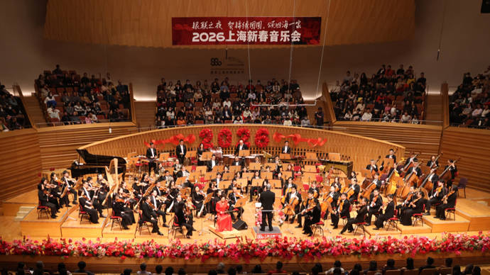 听一场音乐会迎接中国年,已经成为许多上海市民辞旧迎新的“新民俗”。2月6日晚,2026上海新春音乐会奏响,指挥家余隆执棒上海交响乐团,携手二胡演奏家姜建华、男中音歌唱家廖昌永、青年女高音歌唱家顾文梦、小提琴新星章奥哲,以及马头琴与呼麦演奏家哈斯巴根等一众名家新秀,提前送上新春祝福。