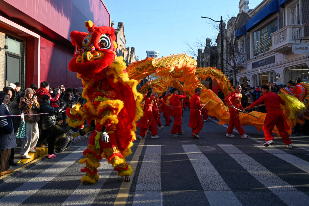 2026年2月8日,龙狮吸引众多市民游客观看。澎湃新闻记者 朱伟辉 图