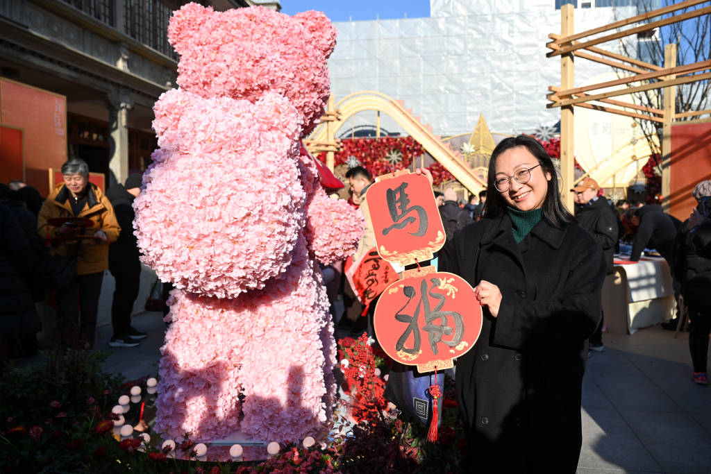 2026年2月8日,游客拿着“马”“福”拍照打卡。澎湃新闻记者 朱伟辉 图