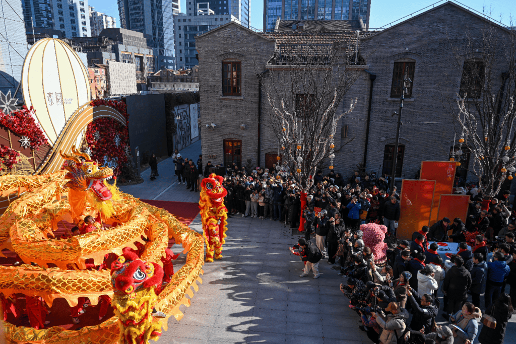 舞龙狮、听民乐、看光影秀……当马年新春的气息浸润上海街巷,张园“海派新春游园会”这一文化品牌再度亮相。2026年2月8日,随着点睛之笔落下、龙狮欢腾舞动,以“步步骏达,岁驰张园”为主题的张园海派新春游园会,在承载城市记忆的百年石库门建筑群中拉开帷幕。
