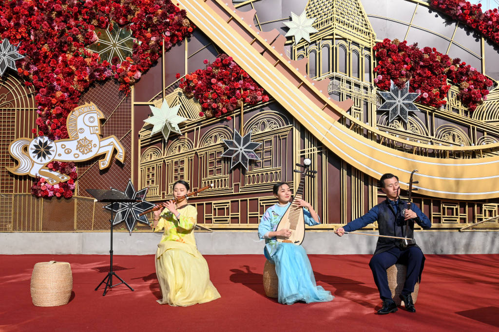 2026年2月8日,上海民族乐团在安垲第艺术墙前奏响经典曲目。澎湃新闻记者 朱伟辉 图