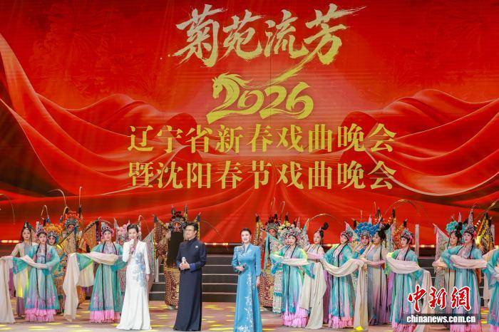 2月10日晚,2026辽宁省新春戏曲晚会暨沈阳春节戏曲晚会在沈阳盛京大剧院隆重举办,为全国观众带来了最东北、最辽宁、最沈阳的浓浓年味儿与祝福。本次晚会由辽宁省文化和旅游厅、沈阳市人民政府主办,沈阳市文化旅游和广播电视局承办。两场晚会共邀请了包括辽宁多个剧种在内的全国15个剧种的50多位名家和青年领军,共唱幸福歌,共庆团圆年。图为黄梅戏《天仙配》。中新社记者 于海洋 摄