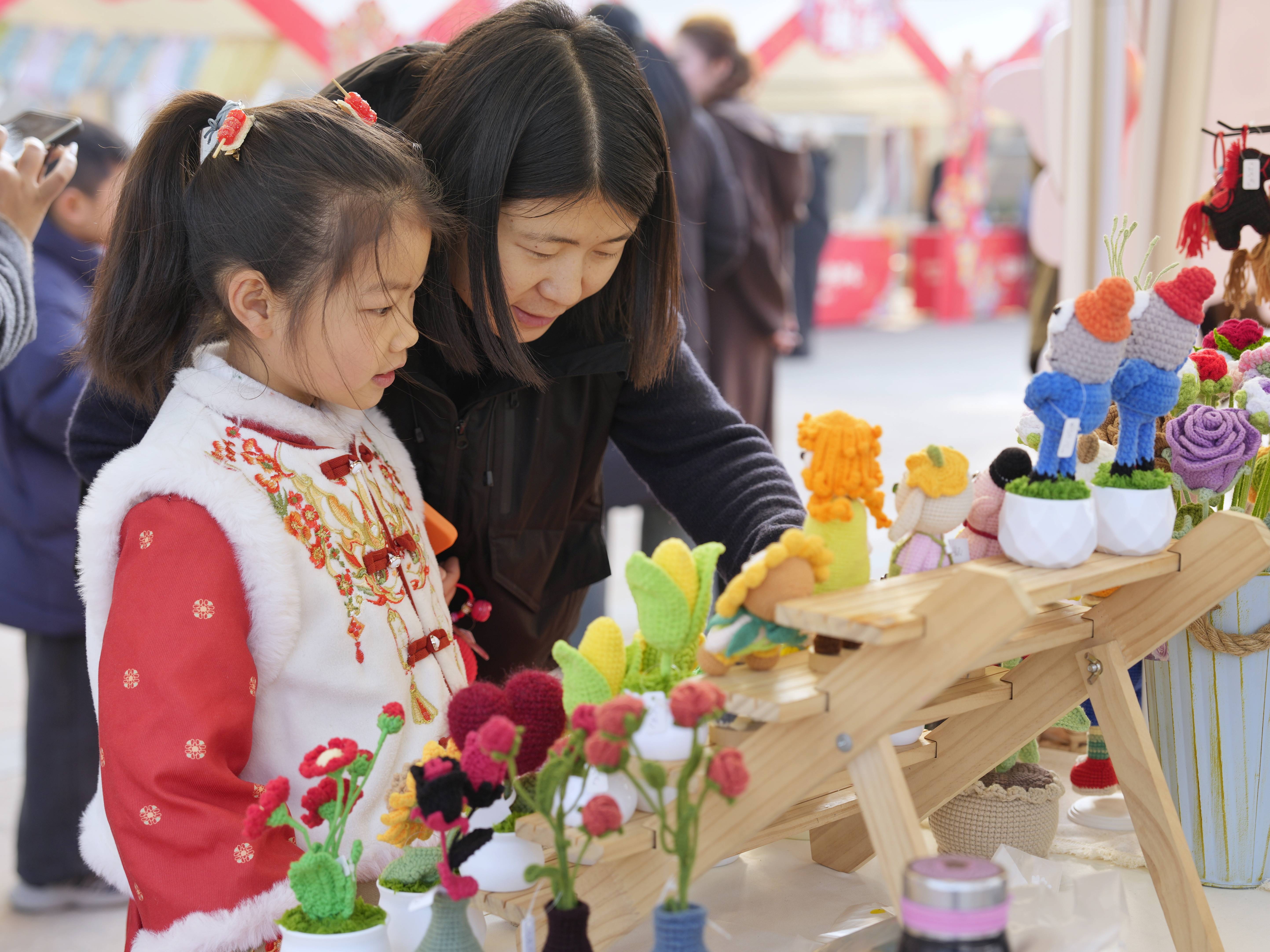 2月11日,市民在村糖会现场选购毛线手工艺品。 新华社记者 刘坤 摄