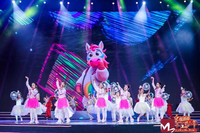 舞美设计巧妙融合象征幸福团圆的中国结、寓意吉祥的生肖马以及奔流不息的泉水元素,通过现场大屏、地屏、虚拟扩展等技术,构建了多层次、立体化的视觉空间,实现了“人在景中、景随人动”的艺术效果。