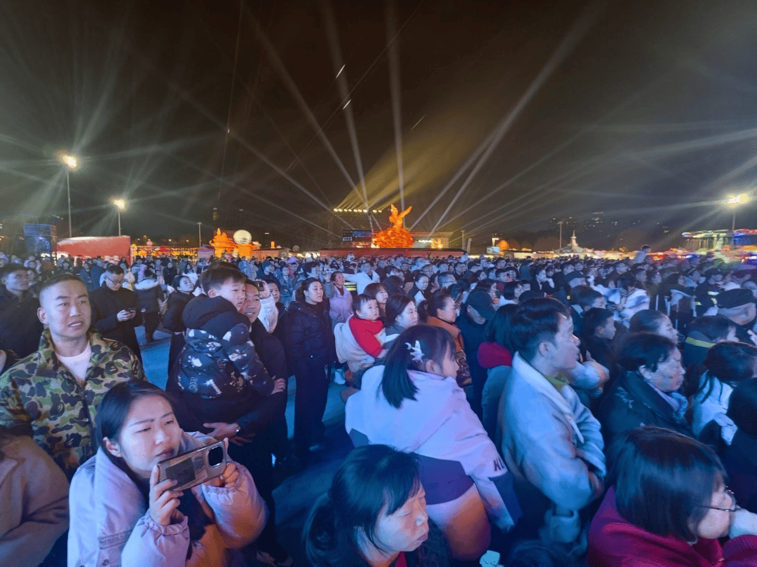 图为2月11日,贵阳观山湖公园民族大联欢广场灯火璀璨,人潮如织。民族歌舞、非遗绝技、高空威亚等多种表演形态在夜色中轮番登场。(贵州日报天眼新闻记者 杨涛)