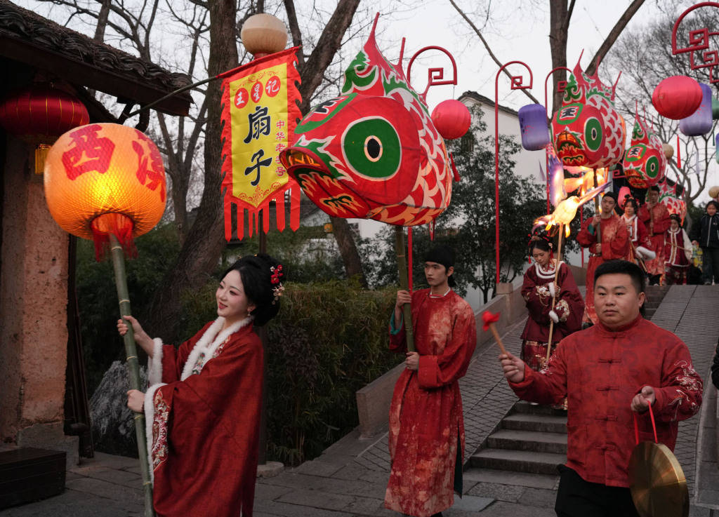 2026年2月11日,2026年西溪灯会,人们参加花灯巡游。千余盏花灯组成十余个赏灯场景,烘托传统年俗氛围。 新华社记者 翁忻旸 摄