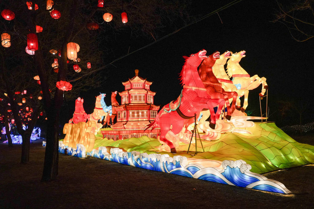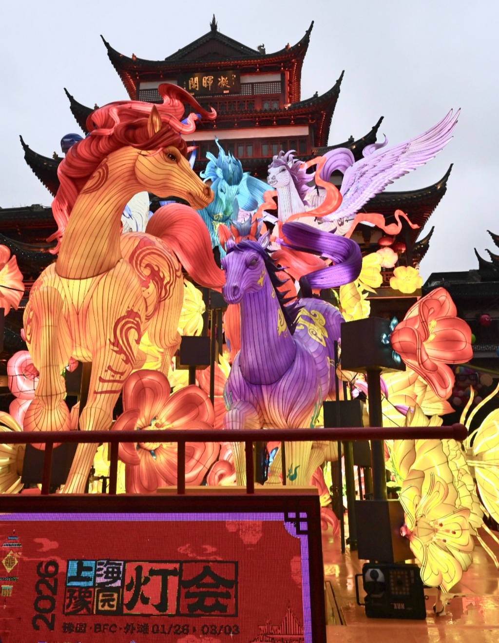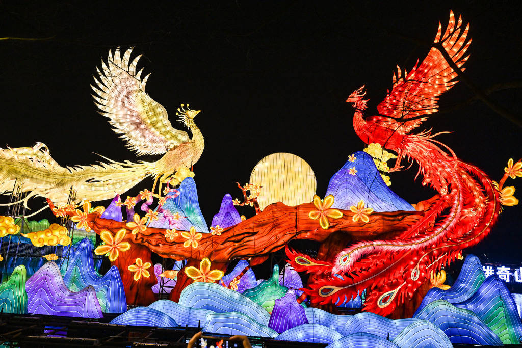 2026年1月26日晚,九曲桥源自《山海经》的神兽灯组。