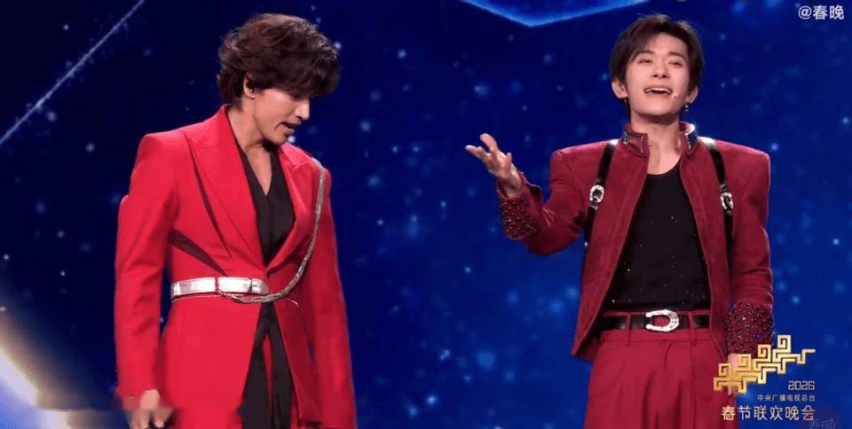 易烊千玺作为春晚的常驻嘉宾,夹在两人中间,似乎还有些新鲜感。