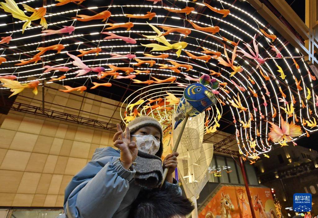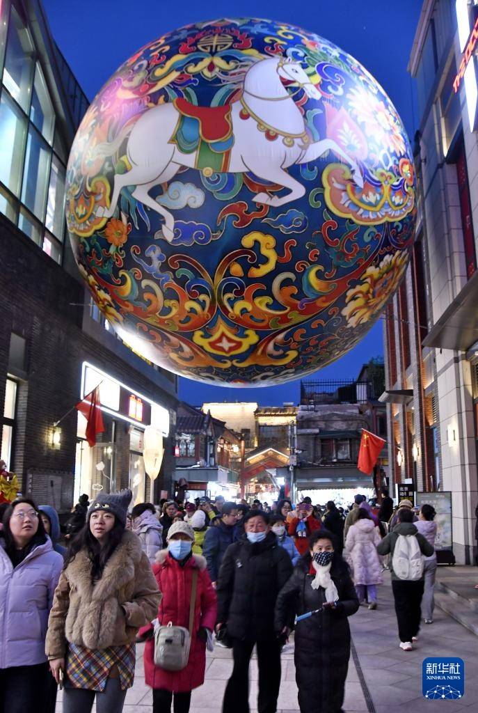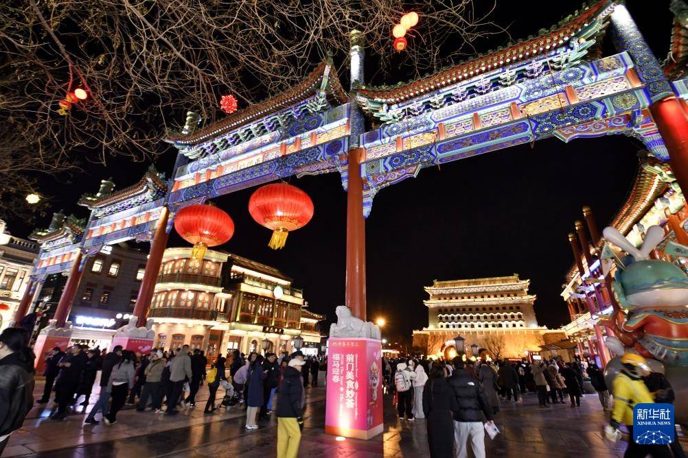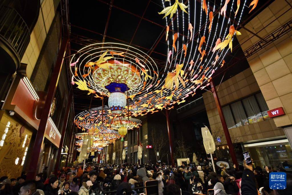 春节将至,北京前门步行街及周边商圈张灯结彩,吸引大批游人和市民前来赏灯、购物。