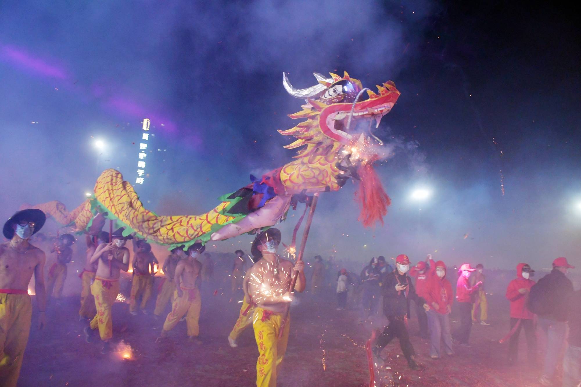 宾阳炮龙节现场万炮齐鸣,舞龙者赤膊上阵,炮龙腾跃掀起民俗狂欢(央广网发 宾阳县融媒体中心供图)