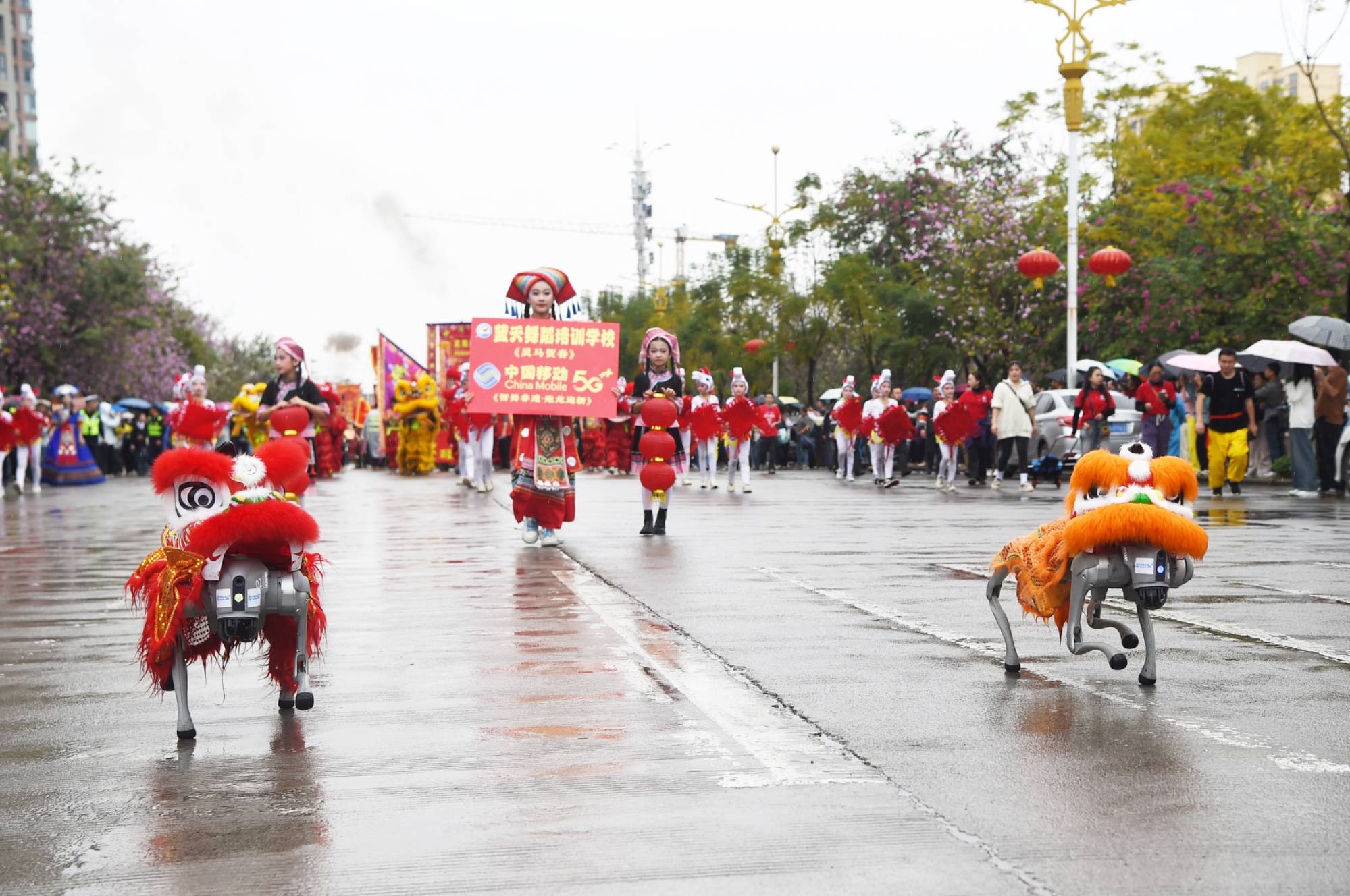 具身机器人现身非遗巡游,科技元素为传统节庆注入新潮活力(央广网发 宾阳县融媒体中心供图)