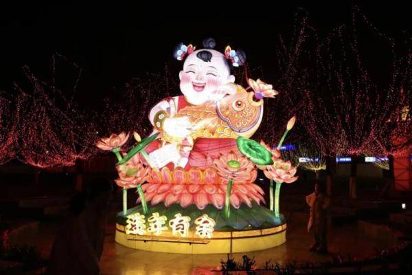 这是灯展的“老面孔”——抱鱼娃娃,年画里的经典形象。但今年的娃娃会眨眼,锦鲤会游动,光影变幻间,传统与现代撞个满怀。
