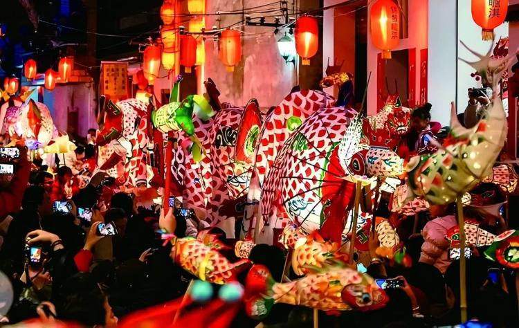 宿迁:皂河龙运城鱼灯巡游,运河畔再现“一夜鱼龙舞”