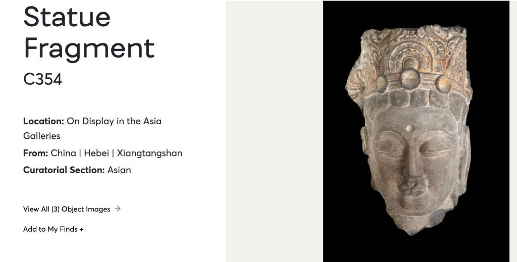 响堂山的佛头 美国克利夫兰艺术博物馆(Cleveland Museum of Art),馆藏号 1923.97