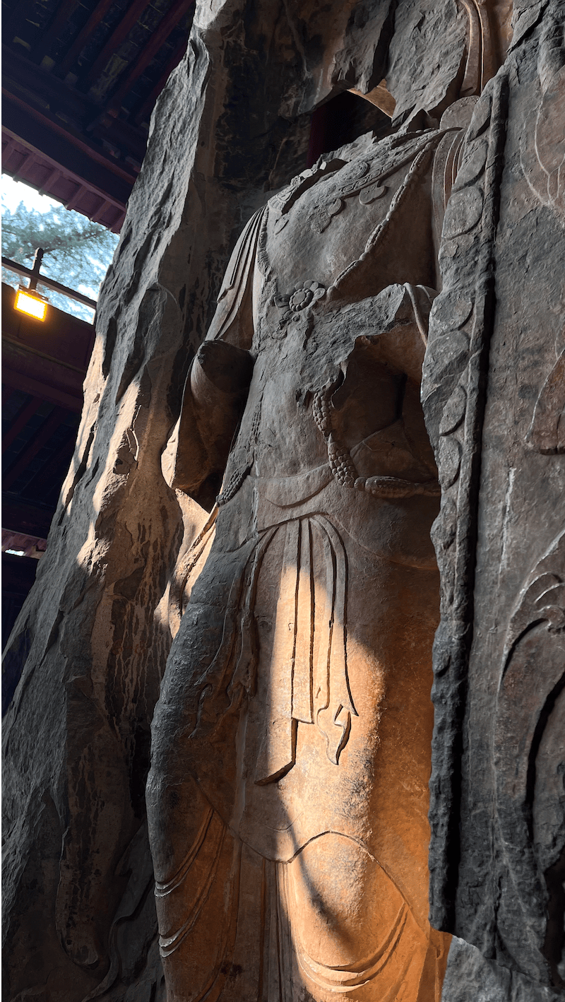 同行的导游早年学习土木工程,因建筑行业紧缩,转行成为石窟讲解员。他用数月自学完成讲解内容,如今过上朝九晚五的安稳生活,石窟艺术中的建造模式成为他的“专业”,每天随车讲解一趟,也乐在其中。