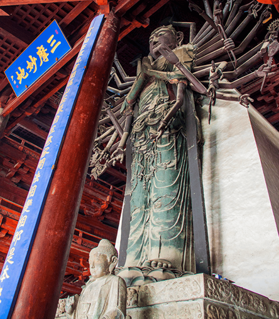 大悲阁内所供的铜铸观音像被称为“千手千眼观音”。图片来源:兴隆寺官网