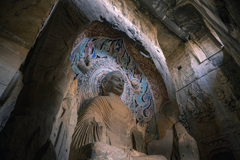 被称为“网红机位”的拍摄角度,从残破的石缝里看到微笑的佛像。视觉中国资料图