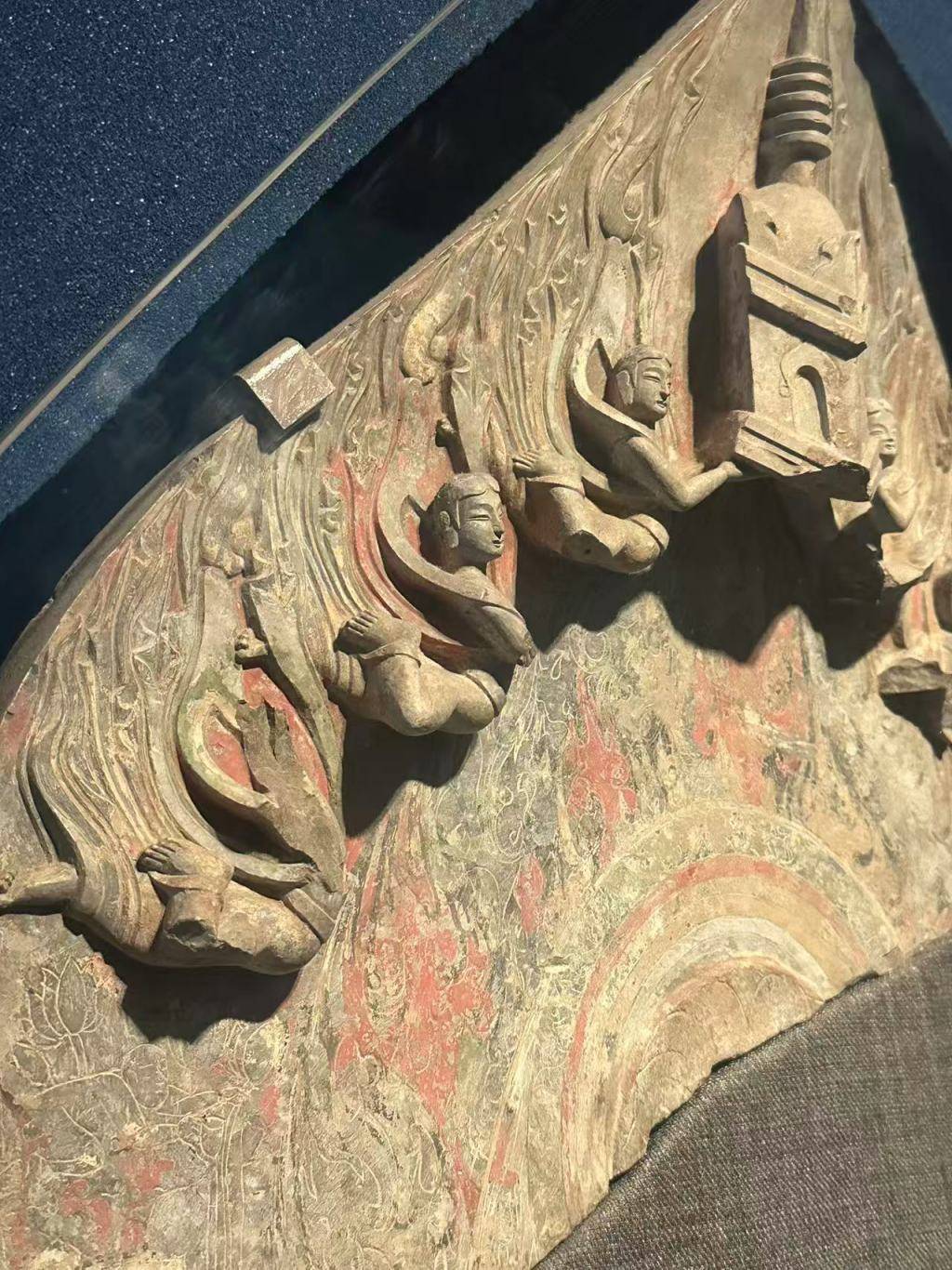 彩绘背屏式造像局部,北魏晚期至东魏